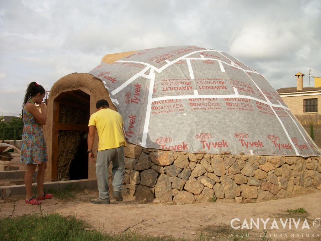 - Nuestra primera vivienda permanente construida con caña, barro y tejas de corcho, marcando un hito en nuestra evolución hacia la arquitectura sostenible. La capa de barro y paja aportaba inercia térmica, mientras que el corcho proporcionaba aislamiento y estanqueidad, logrando una casa eficiente y protegida frente a la climatología. Este proyecto fue especialmente significativo al haberse realizado durante el primer curso de CanyaViva en España y ser además la primera casa construida con el método CanyaViva, demostrando el potencial de los materiales naturales en la creación de espacios habitables, confortables y duraderos.