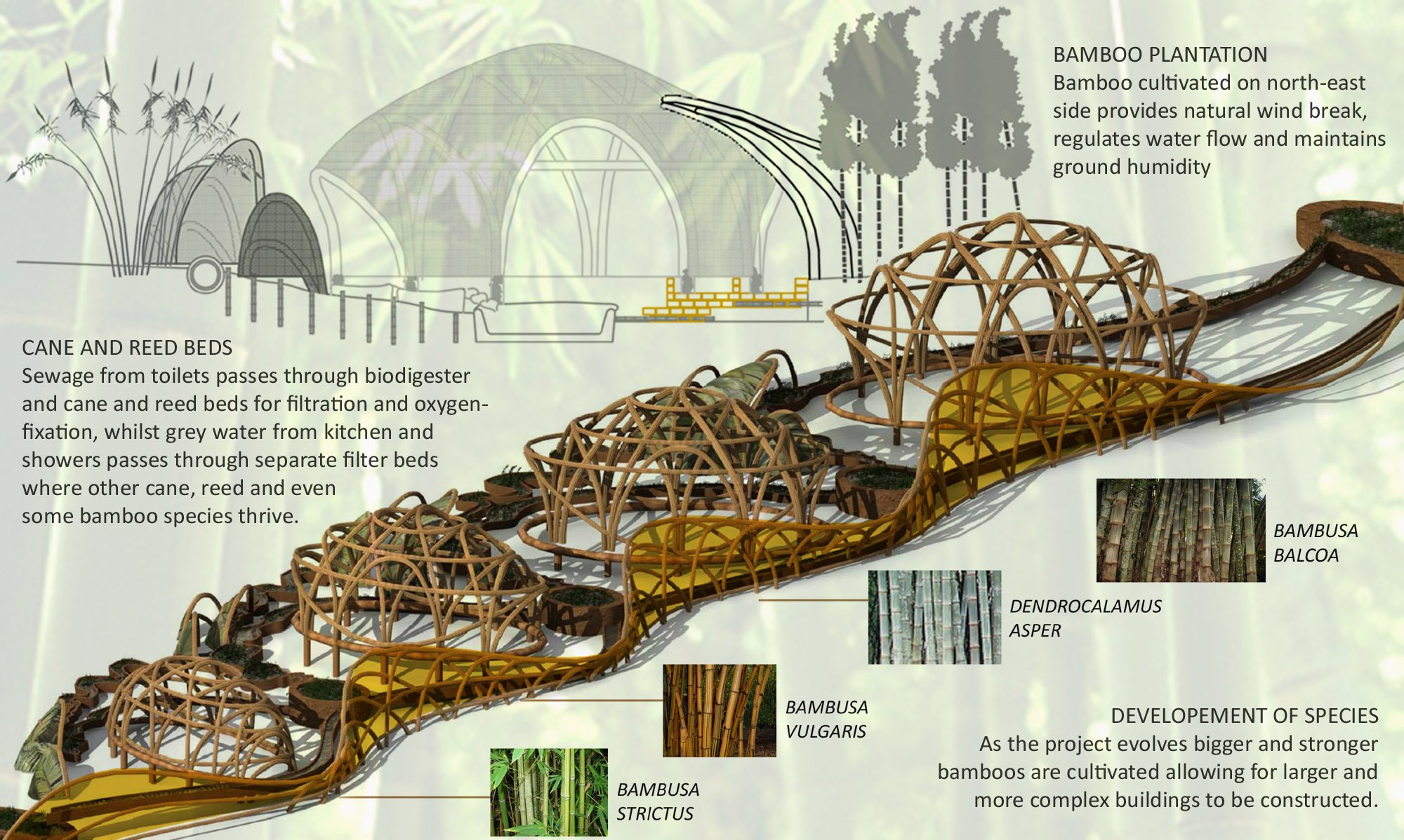 Propuesta conceptual para un spa de lujo dentro del exclusivo complejo turístico Aamby Valley, en India. El diseño combinaba el sistema estructural CanyaViva con bambú y materiales naturales, dando lugar al primer diseño conceptual de una cubierta verde construida sobre una estructura de bambú.